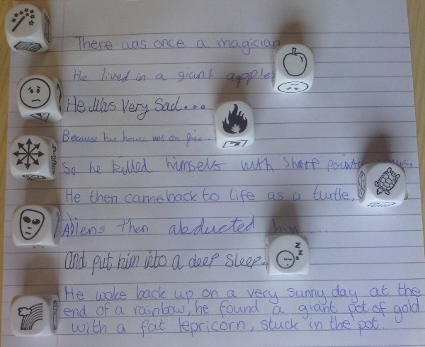 At a recent visit to Thornden School I gave each table a set of story cubes and asked